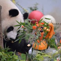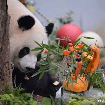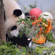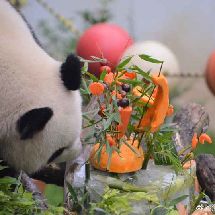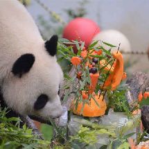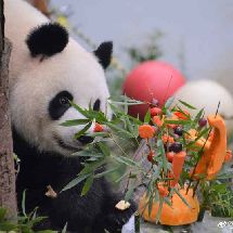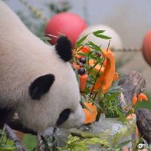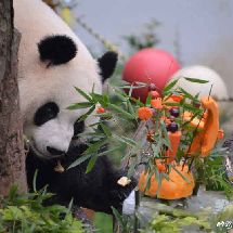 [cp]#大熊猫和和九九[超话]##大熊猫九九[超话]#20190811 和和九九生日会, 九九和蛋糕的初见,吃根笋笋意思一下吧