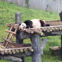 浩浩果真很活泼好动,一直很欢快地找笋,吃笋,进草丛里玩,追小鸟玩。在浩浩进水池玩的时候,解说员小哥一脸痴汉地说“大家快看!他正在玩水!快看快看!他在拨水!”比我还要激动。而朝阳就是在室内安稳地睡着。看他吃了一会儿笋又继续去睡了。睡觉的时候不停调整脸在木架间的位置,抬起头的时候脸上的毛都有痕了。听解说员小哥说,过段时间浩浩和朝阳约期到了之后,他俩会被送回四川。等到红山动物园大熊猫馆扩建之后,会再来一些新的大熊猫。希望在浩浩和朝阳回四川之前,我还能有机会多见见他俩QAQ