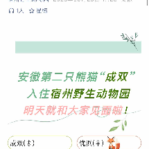 安徽第二只熊猫“成双” 入住宿州野生动物园9月26日就和大家见面啦!9月19日到宿州的吧?
