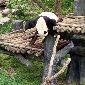 方糖腊肠: 浩浩果真很活泼好动,一直很欢快地找笋,吃笋,进草丛里玩,追小鸟玩。在浩浩进水池玩的时候,解说员小哥一脸痴汉地说“大家快看!他正在玩水!快看快看!他在拨水!”比我还要激动。而朝阳就是在室内安稳地睡着。看他吃了一会儿笋又继续去睡了。睡觉的时候不停调整脸在木架间的位置,抬起头的时候脸上的毛都有痕了。听解说员小哥说,过段时间浩浩和朝阳约期到了之后,他俩会被送回四川。等到红山动物园大熊猫馆扩建之后,会再来一些新的大熊猫。希望在浩浩和朝阳回四川之前,我还能有机会多见见他俩QAQ